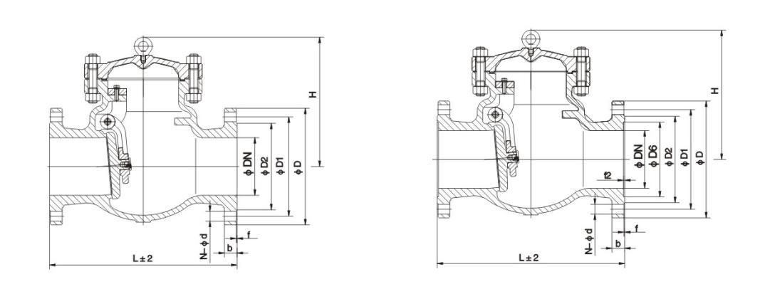 2. ယုံကြည်စိတ်ချရသော တံဆိပ်ခတ်ခြင်း- valve disc နှင့် ထိုင်ခုံများ၏ တံဆိပ်ခတ်ထားသော မျက်နှာပြင်များကို ပုံမှန်အားဖြင့် ဂဟေဆော်ထားသော သံ-အခြေခံအလွိုင်း သို့မဟုတ် Stellite cobalt-based hard alloy ဖြင့် ပြုလုပ်ထားပြီး၊ ၎င်းသည် ဝတ်ဆင်-ခံနိုင်ရည်၊ အပူဒဏ်၊ ချေးခံနိုင်ရည်ရှိပြီး ခြစ်ရာများကို ကောင်းစွာခံနိုင်ရည်ရှိသည်။ ၎င်းသည် ရေရှည်တည်ငြိမ်သော တံဆိပ်ခတ်ခြင်းအကျိုးသက်ရောက်မှုကို သေချာစေပြီး မီဒီယာယိုစိမ့်မှုကို ထိထိရောက်ရောက် ကာကွယ်ပေးသည်။ 3. Unobstructed Flow Channel- စီးဆင်းမှုချန်နယ်ကို ဆင်ခြင်တုံတရားဖြင့် ဒီဇိုင်းထုတ်ထားသောကြောင့် အရည်ခုခံမှုနည်းသည်။ မီဒီယာသည် swing check valve မှတဆင့် ချောမွေ့စွာဖြတ်သန်းနိုင်ပြီး ဖိအားဆုံးရှုံးမှုနှင့် စွမ်းအင်သုံးစွဲမှုကို လျှော့ချနိုင်သည်။